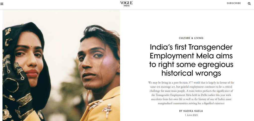 Vee who now works with fashion brands that he once saw only in magazines, believes that the trans employment mela must become an annual fixture. “So that more and more trans people become aware of all the new opportunities there are for them in this world.”