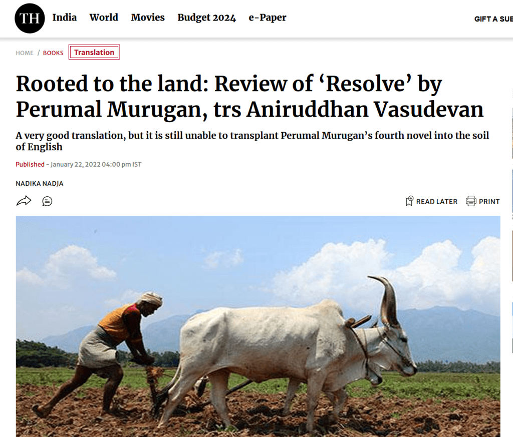 An edited, cleaner version of this review was published in The Hindu’s Book Review, January 2022. “Rooted to the land: Review of ‘Resolve’ by Perumal Murugan, trs Aniruddhan Vasudevan”